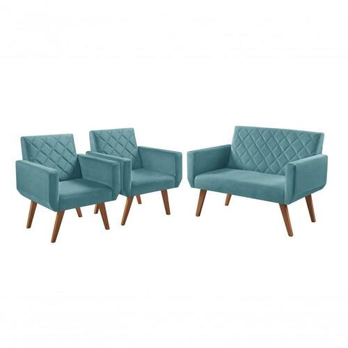 Conjunto Anabelle 2 Poltronas De 1 Lugar 1 Poltrona 2 Lugares Braço Unidecor Turquesa Produzida artesanalmente e com estrutura em Madeira proveniente de Reflorestamento, esta poltrona possui durabilidade, resistência e um excelente acabamento. Conjunto Poltrona Decorativa Anabelle Tenha a tranquilidade de comprar com quem esta disposto a oferecer o melhor atendimento. Caso tenha algum problema com a venda, conte com nossa equipe de pós-venda para solucioná-los. DETALHES DO PRODUTO: NAMORADEIRA ANABELLE 2 LUGARES (1 UNIDADE) Altura - 85cm Largura 1,15 cm Profundidade - 70 cm Peso: 15 Kg Suporta até (kg): 120 kg