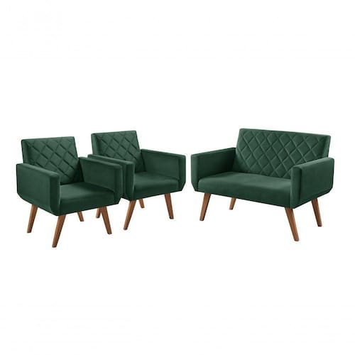 Conjunto Anabelle 2 Poltronas De 1 Lugar 1 Poltrona 2 Lugares Braço Unidecor Verde Produzida artesanalmente e com estrutura em Madeira proveniente de Reflorestamento, esta poltrona possui durabilidade, resistência e um excelente acabamento. Conjunto Poltrona Decorativa Anabelle Tenha a tranquilidade de comprar com quem esta disposto a oferecer o melhor atendimento. Caso tenha algum problema com a venda, conte com nossa equipe de pós-venda para solucioná-los. DETALHES DO PRODUTO: NAMORADEIRA ANABELLE 2 LUGARES (1 UNIDADE) Altura - 85cm Largura 1,15 cm Profundidade - 70 cm Peso: 15 Kg Suporta até (kg): 120 kg