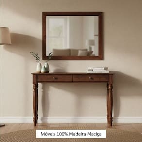 Beleza e funcionalidade em perfeita harmonia! O aparador com estrutura em madeira maciça na cor Café, possui 2 gavetas com corrediças telescópicas, pés torneados e puxadores metálicos. Já o espelho complementa com elegância e profundidade, valorizando o ambiente com seu design clássico. Ideal para halls, salas ou áreas gourmet, este combo traz o charme rústico da Linha Rubi para transformar seu espaço com sofisticação e personalidade. Acabamento: Pintura UV Altura do Conjunto: 90 cm Ambiente: null Ambiente Principal: Sala de Estar Cor: Café Informação Complementar: 1x Aparador Rústico 100% Madeira Maciça com 2 Gavetas para Decoração Sala ou Hall Linha Rubi Café Largura: 120 cm Altura: 80 cm Peso: 13,5 kg Profundidade: 40 cm Necessita Montagem: Sim