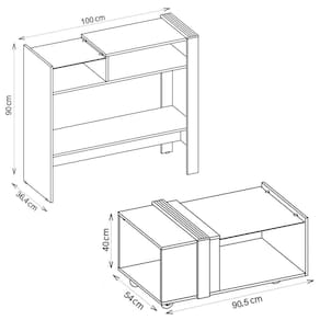 Dimensões do Produto Montado:(Mesa) Altura: 40 cm Largura: 90,5 cm Profundidade: 54 cm Peso: 13,18 kg