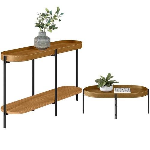Características: Tampo e prateleira em MDP/MDF 18mm. Borda de Couro ecológico na cor preto. Estrutura em aço, na cor caramelo. Produto na cor nature com acabamento fosco. Tampo e prateleira suportam até 3 kg distribuídos cada.