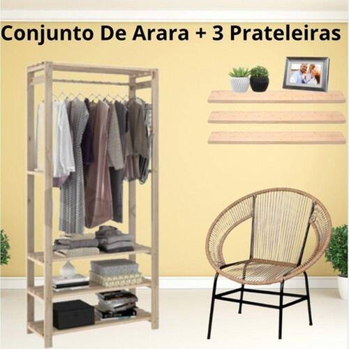 Conjunto Arara 3 Suporte Armazenamento Roupas Sem Porta