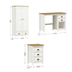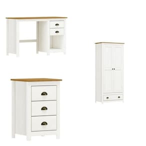 Um conjunto harmônico, durável e sofisticado para compor quartos ou escritórios com personalidade. O armário oferece ótimo espaço com 2 portas e 1 gaveta, ideal para organização. A mesa de cabeceira possui 3 gavetas com corrediças telescópicas e puxadores metálicos, podendo ser utilizada também como gaveteiro, unindo praticidade e charme. Já a escrivaninha completa o ambiente com design elegante e tampo amplo. Suporta Até (kg): 10 kg Acabamento: Pintura UV Altura do Conjunto: 185.5 cm Ambiente: null Ambiente Principal: Escritório Cor: Branco/Freijó Informação Complementar: 1x Mesa de Cabeceira 3 Gavetas Topázio 100% Madeira Maciça para Quarto Branco /Freijó Largura: 46,0 cm Altura: 68,0 cm Peso: 12,05 kg Profundidade: 41,0 cm Necessita Montagem: Sim