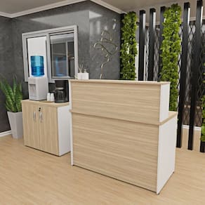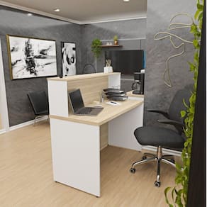 1x Balcão Atendimento Recepção Consultório 120x60cm Carvalho/Branco Largura: 120 cm Altura: 114 cm Peso: 35 kg Profundidade: 60 cm Necessita Montagem: Sim