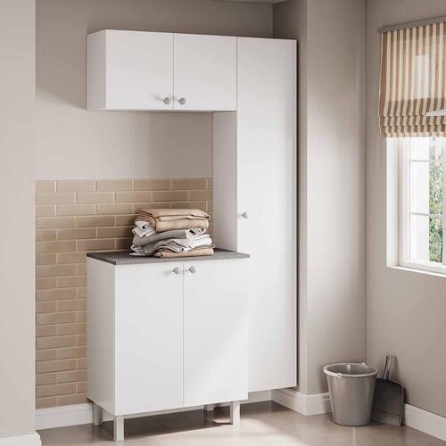 Unindo praticidade a um bonito visual, o Conjunto Armário de Lavanderia 3 Peças com Balcão Multimóveis CR30049 é perfeito para organizar a lavanderia de maneira eficiente. Aqui composto por armário aéreo, armário multiuso e balcão, oferece ótimo espaço interno, com prateleiras que armazenam produtos de limpeza e itens de arrumação com muita acessibilidade. O multiuso possui uma porta única, que oferece fácil acesso ao interior do móvel, uma prateleira e gancho para a acomodação de vassoura ou rodo. Já o balcão é composto por duas portas, uma prateleira e tampo em estilo concreto BP. A qualidade dessas peças é um diferencial: a caixaria é 100% produzida em um aço que passa por rigoroso processo de pintura eletrostática e anticorrosiva - resultando em um acabamento brilhoso e garante durabilidade , e portas em MDP, material de excelente durabilidade e muito fácil de limpar. Essa combinação de materiais é perfeita para trazer resistência aos móveis dispostos em uma área que sofre com intempéries como vento, umidade e água, como é lavanderia.