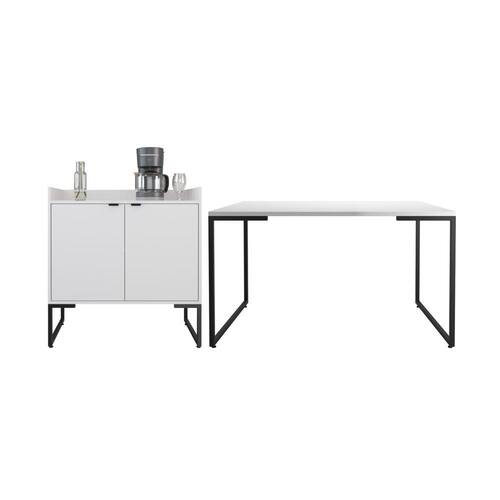 O Conjunto de Armário e Mesa de Jantar é perfeito para você que deseja melhorar o visual do seu cômodo! A Mesa NÃO acompanha cadeiras. Medidas Do Armário: Altura: 90 cm Largura: 80 cm Comprimento: 40 cm Informações do Armário: Cor: Branco / Preto Prateleira: Sim (1, interna) Material: MDP/BP Informações da Mesa: Altura: 75 cm Largura: 160 cm Comprimento: 90 cm Informações Adicionais da Mesa: Cor: Branco / Preto Formato: Retangular Material: MDP Pés Metálicos com Pintura Epóxi Preto Sapatas Niveladora Necessitam Montagem: Sim Itens Inclusos 1 Armário 1 Mesa de Jantar Kit completo para montagem, manual detalhado de instruções para montagem. Garantia 3 meses contra defeito de fabricação Instruções de Limpeza Limpar com flanela ou pano macio seco, não utilizar produtos abrasivos, desengordurantes, álcool ou solvente. Não expor o produto diretamente à luz solar e à umidade * Sugerimos a contratação de um montador profissional para a montagem do produto. Não nos responsabilizamos por avarias causadas no ato da montagem. * Não nos responsabilizamos pela montagem e desmontagem do produto no ato da entrega e devolução, assim como os custos gerados nestas situações. A transportadora entregará o produto no andar térreo do endereço de entrega. Não nos responsabilizamos por subir escadas, corredores e elevadores ou transporte por guincho em apartamentos. *Imagens meramente ilustrativas