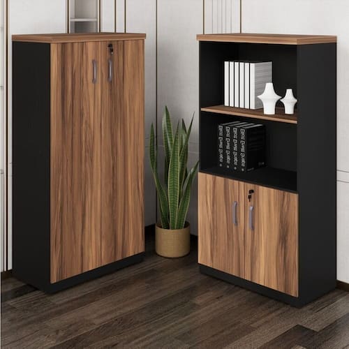 fixa. Altura do Conjunto: 161.5 cm Ambiente: null Ambiente Principal: Escritório Cor: Marrom/Preto Cor do Produto: Marrom/Preto Informação Complementar: 1x Armário para Escritório Alto Marrom/Preto Largura: 80 cm Altura: 161,5 cm Peso: 57,15 kg Profundidade: 45 cm Necessita Montagem: Sim