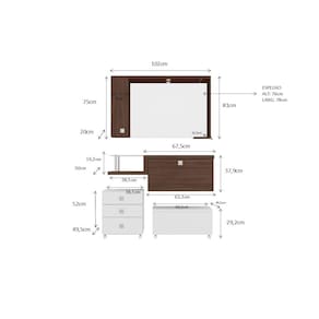 - Gabinete: (L X A X P) 102cm x 37,5cm x 50cm - Medida da Espelheira: (L X A X P) 102cm x 81cm x 20cm - Medida Gaveteiro: (L X A X P) 38cm x 47cm x 49,5cm