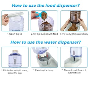 O alimentador de cães e gatos de café do companheiro de estimação usa tecnologia de alimentação por gravidade para dispensar alimentos secos quando o animal esvazia a tigela, prolongando assim o tempo entre dois reabastecimentos. - Alimentador e dispensador de água para cães e gatos: 1 alimentador automático para gatos, dispensador de água, 1. conjunto de alimentador e bebedouro adequado para cães ou gatos pequenos e médios. - Alimentador de animais de estimação de grande capacidade: grande capacidade de 3,8 L, pode durar cerca de 7 dias para animais de estimação pequenos, 3 dias para animais de estimação grandes. Você pode ter certeza de ir para férias, trabalho, festa, não se preocupe se os animais de estimação ficarão com fome. A tigela dobrável pode resolver o problema de alimentação quando você leva seus animais de estimação para passear. - Material do conjunto de alimentador automático de gatos: material 100% novo, resistente a quedas e pressão. É fácil de limpar, só pode ser lavado à mão e pode ser lavado diretamente com água. Recomenda-se lavar uma vez por semana. Há pés de borracha antiderrapante na parte inferior do alimentador para garantir uma colocação segura. - Design inovador do alimentador de gatos: o dispensador de água adota design de válvula em espiral e mola para garantir que nunca vaze. Com uma garrafa de armazenamento transparente, você pode recarregá-la a tempo quando a comida e a água estiverem gastas. - Pacote com 2 alimentadores automáticos para gatos: se você tiver algum problema depois de receber a mercadoria, imediatamente, resolveremos o problema para você a tempo.