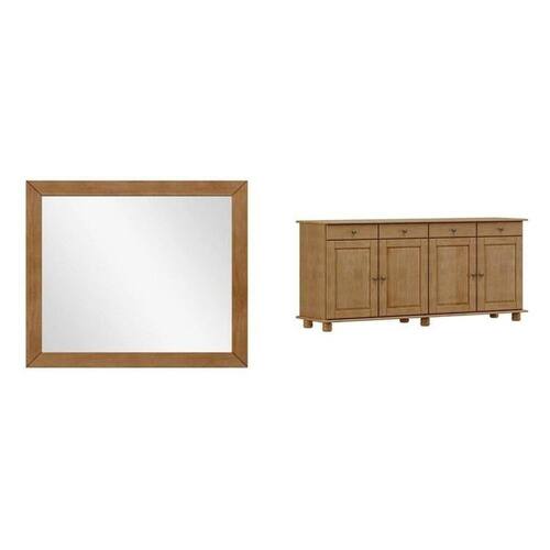 Combo Linha Rubi: Balcão Espelho, sofisticação e funcionalidade em perfeita harmonia! O balcão é feito em madeira maciça de Pinus, possui 4 portas e 4 gavetas com corrediças telescópicas, acabamento acetinado na cor Freijó e puxadores metálicos. Já o espelho complementa o ambiente com elegância e profundidade, valorizando a composição com estilo rústico refinado. Ideal para salas, halls ou áreas gourmet, este combo transforma seu espaço com personalidade e charme duradouro. Acabamento: Pintura UV Altura do Conjunto: 90 cm Ambiente: null Ambiente Principal: Sala de Jantar Cor: Freijó Informação Complementar: 1x Buffet Aparador Rústico 100% Madeira Maciça 4 Portas 4 Gavetas Linha Rubi Freijó Largura: 168,9 cm Altura: 85,5 cm Peso: 39,92 kg Profundidade: 43,0 cm Necessita Montagem: Sim