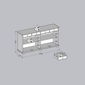 Largura do Conjunto: 168.9 cm Marca: Finestra Material Principal: Madeira Maciça Possui Portas: 04 Possui Rodízio: Não Suporta Até (kg): 30 kg