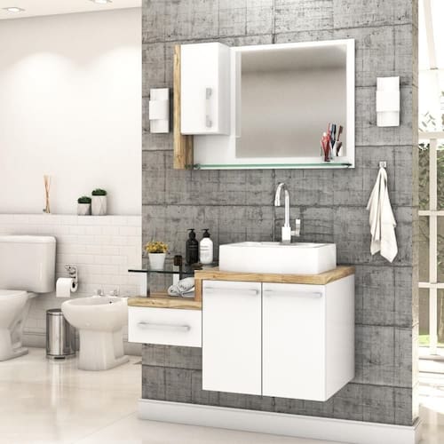Conjunto Balcão C/cuba Aria 41 E Espelheira Legno 830 Branco Chess C/branco Chess Branco Chess C/carvalho