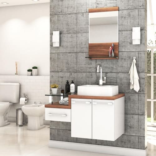 Sobre o ProdutoConjunto Balcão C/Cuba Aria 41 e Espelheira Legno 831 Branco ChessDescrição do Produto:O Conjunto (Balcão + Cuba + Espelheira) Legno KTLG831 é um produto compacto, de design contemporâneo e minimalista, projetado para se encaixar no seu espaço, composto por um gabinete com gaveta lateral e tampo de apoio de vidro 10mm. A espelheira possui espelho lapidado e 01 prateleira de vidro 10mm, sendo perfeita para organizar suas coisas e fazer parte da decoração do seu linha Legno combina a leveza do branco e detalhes em vidro com tons amadeirados, conferindo uma personalidade contemporânea aos móveis de design minimalista e traços retos. Produtos que aliam funcionalidade e praticidade ao seu dia a dia são características marcantes desta coleção!Itens Inclusos:1 Conjunto Balcão C/Cuba e EspelheiraDimensões dos Produtos:Gabinete: 83 x 43 x 51 cmEspelheira: 37,5 x 11,5 x 67,5 cmCuba 41 x 30 x 9,5 cmInformações Logísticas (Comp. X Prof. X Alt.) 60 x 50,5 x 58 cm - Peso: 31,19 KgPeso Total: 31,19 KgObservações:Não acompanha acessórios decorativos. Imagens meramente ilustrativas.Informações Técnicas / Características:- Cor do Produto: Branco Chess- Cor do Predominante: Branco- Marca: Compace- Modelo: KTLG831- Linha: Legno- Material: Mdp - Acabamento: Perffect Acetinado- Escala de Brilho: Fosco- Fita de Borda: Pvc- Possui Portas: 2- Tipo de Porta: Bater- Tipo da Dobradiça: Metálica- Possui Gavetas: 1- Tipo da Corrediça: Telescópica- Possui Chave: Não- Peso Máximo por Gaveta: 3 kg- Material do Puxador: Abs- Possui Prateleiras: 2- Peso Máximo por Prateleira: 1 kg Espelheira / 4 kg Balcão- Possui Pés: Não, suspenso - Possui Espelho: Sim- Possui Vidro: Sim- Acompanha Cuba / Lavatório: Sim, de Mármore Sintético- Furação para Cuba / Lavatório: Não- Tipo da Cuba: Apoio- Cor da Cuba: Branca- Suporta Até (kg): 20 kg - Peso Lí.: 29,23Kg- Recomendações de Uso, Manutenção e Limpeza: Para a limpeza, utilize flanela seca ou pano macio levemente umedecido em água. Utilize um pano seco em seguida. Evite com produtos químicos (solventes, thinner, acetona, etc) e não utilize nenhum tipo de esponja de aço.- Necessita de Montagem: Sim / Acompanha Manual de Montagem- Complexidade da Montagem: Média: pode ser montado por mais de uma pessoa e/ou necessite de maior conhecimento para montagem.- Garantia: 6 meses Material: Mdp | Acabamento: Perffect Acetinado | Escala de Brilho: Fosco | Fita de Borda: Pvc | Possui Portas: 2 | Tipo de Porta: Bater | Tipo da Dobradiça: Metálica | Comprimento: 83 | Limite de unidades por venda: É possível comprar até 1 unidade por venda. | Largura: 43 | Quantidade máxima de pedido: 1 | Altura: 51 | Profundidade: 43 | Preço tabelado: | Cor: Multicolorido | Certificação de teste externa: Não Aplicável | Baterias são necessárias?: false | Palavras-chave de Pesquisa: Não aplicável | Fonte de energia: Não aplicável | Fabricante: Compace | Dimensões do item P x L x A: | Principais Características do Produto 0: | da peça: | Principais Características do Produto 2: | Peso do item: | Componentes incluídos: | Exige montagem: | Principais Características do Produto 1: | Is Fragile: | Quantidade de itens: | do modelo: | de caixas: Cor: Branco Chess C/Nogal