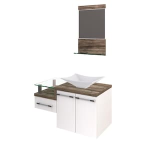 Sobre o ProdutoConjunto Balcão C/Cuba L38 e Espelheira Legno 831 Branco ChessDescrição do Produto:O Conjunto (Balcão + Cuba + Espelheira) Legno KTLG831 é um produto compacto, de design contemporâneo e minimalista, projetado para se encaixar no seu espaço, composto por um gabinete com gaveta lateral e tampo de apoio de vidro 10mm. A espelheira possui espelho lapidado e 01 prateleira de vidro 10mm, sendo perfeita para organizar suas coisas e fazer parte da decoração do seu linha Legno combina a leveza do branco e detalhes em vidro com tons amadeirados, conferindo uma personalidade contemporânea aos móveis de design minimalista e traços retos. Produtos que aliam funcionalidade e praticidade ao seu dia a dia são características marcantes desta coleção!Itens Inclusos:1 Conjunto Balcão C/Cuba e EspelheiraDimensões dos Produtos:Gabinete: 83 x 43 x 51 cmEspelheira: 37,5 x 11,5 x 67,5 cmCuba 38,5 x 33 x 11,5 cmInformações Logísticas (Comp. X Prof. X Alt.) 60 x 50,5 x 58 cm - Peso: 30 KgPeso Total: 30 KgObservações:Não acompanha acessórios decorativos. Imagens meramente ilustrativas.Informações Técnicas / Características:- Cor do Produto: Branco Chess- Cor do Predominante: Branco- Marca: Compace- Modelo: KTLG831- Linha: Legno- Material: Mdp - Acabamento: Perffect Acetinado- Escala de Brilho: Fosco- Fita de Borda: Pvc- Possui Portas: 2- Tipo de Porta: Bater- Tipo da Dobradiça: Metálica- Possui Gavetas: 1- Tipo da Corrediça: Telescópica- Possui Chave: Não- Peso Máximo por Gaveta: 3 kg- Material do Puxador: Abs- Possui Prateleiras: 2- Peso Máximo por Prateleira: 1 kg Espelheira / 4 kg Balcão- Possui Pés: Não, suspenso - Possui Espelho: Sim- Possui Vidro: Sim- Acompanha Cuba / Lavatório: Sim, de Mármore Sintético- Furação para Cuba / Lavatório: Não- Tipo da Cuba: Apoio- Cor da Cuba: Branca- Suporta Até (kg): 20 kg - Peso Lí.: 28,04Kg- Recomendações de Uso, Manutenção e Limpeza: Para a limpeza, utilize flanela seca ou pano macio levemente umedecido em água. Utilize um pano seco em seguida. Evite com produtos químicos (solventes, thinner, acetona, etc) e não utilize nenhum tipo de esponja de aço.- Necessita de Montagem: Sim / Acompanha Manual de Montagem- Complexidade da Montagem: Média: pode ser montado por mais de uma pessoa e/ou necessite de maior conhecimento para montagem.- Garantia: 6 meses Material: Mdp | Acabamento: Perffect Acetinado | Escala de Brilho: Fosco | Fita de Borda: Pvc | Possui Portas: 2 | Tipo de Porta: Bater | Tipo da Dobradiça: Metálica | Tipo de Produto: Gabinete de Produto | Fabricante: Compace | Limite de unidades por venda: É possível comprar até 1 unidade por venda. | Quantidade máxima de pedido: 1 | Comprimento: 83 | Largura: 43 | Altura: 51 | Profundidade: 43 | Preço tabelado: 538.91999999999996 | Cor: Multicolorido | Certificação de teste externa: Não Aplicável | Baterias são necessárias?: false | Palavras-chave de Pesquisa: Não aplicável | Fonte de energia: Não aplicável | Exige montagem: | Principais Características do Produto 2: | Componentes incluídos: | Principais Características do Produto 1: | Dimensões do item P x L x A: | Principais Características do Produto 0: | Is Fragile: | Peso do item: | da peça: | de caixas: | do modelo: | Quantidade de itens: Cor: Branco Chess C/Carvalho Dark