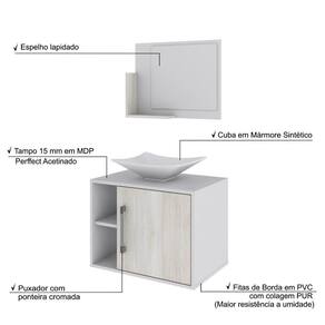 Sobre o ProdutoConjunto Balcão C/Cuba L38 e Espelheira Soft 600 Branco ChessDescrição do Produto:O Conjunto Balcão C/Cuba e Espelheira Soft 600 KTSF600 tem design compacto, perfeito para pequenos espaços, conta com uma prateleira lateral e uma cuba de apoio, além da linha Basic traz móveis funcionais e de design tradicional, aliando simplicidade e estilo para seu ambiente de banheiro!Itens Inclusos:1 Conjunto Balcão C/Cuba e EspelheiraDimensões dos Produtos:Gabinete: 60 x 40 x 45 cmEspelheira: 53 x 10,5 x 42 cmCuba 38,5 x 33 x 11,5 cmInformações Logísticas (Comp. X Prof. X Alt.) 64 x 45 x 26 cm - Peso: 20,45 KgPeso Total: 20,45 KgObservações:Não acompanha acessórios decorativos. Imagens meramente ilustrativas.Informações Técnicas / Características:- Cor do Produto: Branco Chess- Cor do Predominante: Branco- Marca: Compace- Modelo: KTSF600- Linha: Basic- Material: Mdp - Acabamento: Perffect Acetinado- Escala de Brilho: Fosco- Fita de Borda: Pvc- Possui Portas: 1- Tipo de Porta: Bater- Tipo da Dobradiça: Metálica - Material do Puxador: Abs- Possui Prateleiras: 2- Peso Máximo por Prateleira: 1 kg Espelheira / 3 kg Balcão- Possui Pés: Não, suspenso - Possui Espelho: Sim- Possui Vidro: Sim- Acompanha Cuba / Lavatório: Sim, de Mármore Sintético- Furação para Cuba / Lavatório: Não- Tipo da Cuba: Apoio- Cor da Cuba: Branca- Suporta Até (kg): 16 kg - Peso Lí.: 19,03Kg- Recomendações de Uso, Manutenção e Limpeza: Para a limpeza, utilize flanela seca ou pano macio levemente umedecido em água. Utilize um pano seco em seguida. Evite com produtos químicos (solventes, thinner, acetona, etc) e não utilize nenhum tipo de esponja de aço.- Necessita de Montagem: Sim / Acompanha Manual de Montagem- Complexidade da Montagem: Média: pode ser montado por mais de uma pessoa e/ou necessite de maior conhecimento para montagem.- Garantia: 6 meses Material: Mdp | Acabamento: Perffect Acetinado | Escala de Brilho: Fosco | Fita de Borda: Pvc | Possui Portas: 1 | Tipo de Porta: Bater | Tipo da Dobradiça: Metálica | Limite de unidades por venda: É possível comprar até 1 unidade por venda. | Comprimento: 60 | Largura: 40 | Quantidade máxima de pedido: 1 | Altura: 45 | Profundidade: 40 | Preço Tabelado: 307.89999999999998 | Cor: Multicolorido | Certificação de teste externa: Não Aplicável | Baterias são necessárias?: false | Palavras-chave de Pesquisa: Não aplicável | Fonte de energia: Não aplicável | Fabricante: Compace | Peso do item: | Exige montagem: | da peça: | Componentes incluídos: | Principais Características do Produto 1: | Principais Características do Produto 0: | Dimensões do item P x L x A: | Principais Características do Produto 2: | Is Fragile: | de caixas: | do modelo: | Quantidade de itens: Cor: Branco Chess C/Snow