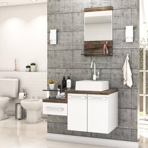 Sobre o ProdutoConjunto Balcão C/Cuba Q32 e Espelheira Legno 831 Branco ChessDescrição do Produto:O Conjunto (Balcão + Cuba + Espelheira) Legno KTLG831 é um produto compacto, de design contemporâneo e minimalista, projetado para se encaixar no seu espaço, composto por um gabinete com gaveta lateral e tampo de apoio de vidro 10mm. A espelheira possui espelho lapidado e 01 prateleira de vidro 10mm, sendo perfeita para organizar suas coisas e fazer parte da decoração do seu linha Legno combina a leveza do branco e detalhes em vidro com tons amadeirados, conferindo uma personalidade contemporânea aos móveis de design minimalista e traços retos. Produtos que aliam funcionalidade e praticidade ao seu dia a dia são características marcantes desta coleção!Itens Inclusos:1 Conjunto Balcão C/Cuba e EspelheiraDimensões dos Produtos:Gabinete: 83 x 43 x 51 cmEspelheira: 37,5 x 11,5 x 67,5 cmCuba 33 x 30 x 10 cmInformações Logísticas (Comp. X Prof. X Alt.) 60 x 50,5 x 58 cm - Peso: 30,59 KgPeso Total: 30,59 KgObservações:Não acompanha acessórios decorativos. Imagens meramente ilustrativas.Informações Técnicas / Características:- Cor do Produto: Branco Chess- Cor do Predominante: Branco- Marca: Compace- Modelo: KTLG831- Linha: Legno- Material: Mdp - Acabamento: Perffect Acetinado- Escala de Brilho: Fosco- Fita de Borda: Pvc- Possui Portas: 2- Tipo de Porta: Bater- Tipo da Dobradiça: Metálica- Possui Gavetas: 1- Tipo da Corrediça: Telescópica- Possui Chave: Não- Peso Máximo por Gaveta: 3 kg- Material do Puxador: Abs- Possui Prateleiras: 2- Peso Máximo por Prateleira: 1 kg Espelheira / 4 kg Balcão- Possui Pés: Não, suspenso - Possui Espelho: Sim- Possui Vidro: Sim- Acompanha Cuba / Lavatório: Sim, de Mármore Sintético- Furação para Cuba / Lavatório: Não- Tipo da Cuba: Apoio- Cor da Cuba: Branca- Suporta Até (kg): 20 kg - Peso Lí.: 28,63Kg- Recomendações de Uso, Manutenção e Limpeza: Para a limpeza, utilize flanela seca ou pano macio levemente umedecido em água. Utilize um pano seco em seguida. Evite com produtos químicos (solventes, thinner, acetona, etc) e não utilize nenhum tipo de esponja de aço.- Necessita de Montagem: Sim / Acompanha Manual de Montagem- Complexidade da Montagem: Média: pode ser montado por mais de uma pessoa e/ou necessite de maior conhecimento para montagem.- Garantia: 6 meses Material: Mdp | Acabamento: Perffect Acetinado | Escala de Brilho: Fosco | Fita de Borda: Pvc | Possui Portas: 2 | Tipo de Porta: Bater | Tipo da Dobradiça: Metálica | Comprimento: 83 | Limite de unidades por venda: É possível comprar até 1 unidade por venda. | Largura: 43 | Quantidade máxima de pedido: 1 | Altura: 51 | Profundidade: 43 | Preço tabelado: 517.32000000000005 | Cor: Multicolorido | Certificação de teste externa: Não Aplicável | Baterias são necessárias?: false | Palavras-chave de Pesquisa: Não aplicável | Fonte de energia: Não aplicável | Fabricante: Compace | da peça: | Exige montagem: | Peso do item: | Componentes incluídos: | Principais Características do Produto 1: | Principais Características do Produto 0: | Dimensões do item P x L x A: | Principais Características do Produto 2: | Is Fragile: | Quantidade de itens: | do modelo: | de caixas: Cor: Branco Chess C/Carvalho Dark