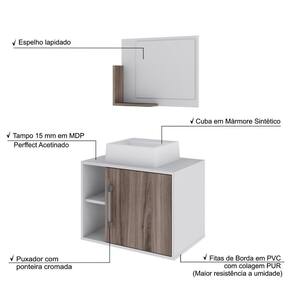 Sobre o ProdutoConjunto Balcão C/Cuba Q32 e Espelheira Soft 600 Branco ChessDescrição do Produto:O Conjunto Balcão C/Cuba e Espelheira Soft 600 KTSF600 tem design compacto, perfeito para pequenos espaços, conta com uma prateleira lateral e uma cuba de apoio, além da linha Basic traz móveis funcionais e de design tradicional, aliando simplicidade e estilo para seu ambiente de banheiro!Itens Inclusos:1 Conjunto Balcão C/Cuba e EspelheiraDimensões dos Produtos:Gabinete: 60 x 40 x 45 cmEspelheira: 53 x 10,5 x 42 cmCuba 33 x 30 x 10 cmInformações Logísticas (Comp. X Prof. X Alt.) 64 x 45 x 26 cm - Peso: 21,04 KgPeso Total: 21,04 KgObservações:Não acompanha acessórios decorativos. Imagens meramente ilustrativas.Informações Técnicas / Características:- Cor do Produto: Branco Chess- Cor do Predominante: Branco- Marca: Compace- Modelo: KTSF600- Linha: Basic- Material: Mdp - Acabamento: Perffect Acetinado- Escala de Brilho: Fosco- Fita de Borda: Pvc- Possui Portas: 1- Tipo de Porta: Bater- Tipo da Dobradiça: Metálica - Material do Puxador: Abs- Possui Prateleiras: 2- Peso Máximo por Prateleira: 1 kg Espelheira / 3 kg Balcão- Possui Pés: Não, suspenso - Possui Espelho: Sim- Possui Vidro: Sim- Acompanha Cuba / Lavatório: Sim, de Mármore Sintético- Furação para Cuba / Lavatório: Não- Tipo da Cuba: Apoio- Cor da Cuba: Branca- Suporta Até (kg): 16 kg - Peso Lí.: 19,62Kg- Recomendações de Uso, Manutenção e Limpeza: Para a limpeza, utilize flanela seca ou pano macio levemente umedecido em água. Utilize um pano seco em seguida. Evite com produtos químicos (solventes, thinner, acetona, etc) e não utilize nenhum tipo de esponja de aço.- Necessita de Montagem: Sim / Acompanha Manual de Montagem- Complexidade da Montagem: Média: pode ser montado por mais de uma pessoa e/ou necessite de maior conhecimento para montagem.- Garantia: 6 meses Material: Mdp | Acabamento: Perffect Acetinado | Escala de Brilho: Fosco | Fita de Borda: Pvc | Possui Portas: 1 | Tipo de Porta: Bater | Tipo da Dobradiça: Metálica | cor da cuba: Branco | Limite de unidades por venda: É possível comprar até 1 unidade por venda. | Quantidade máxima de pedido: 1 | Comprimento: 60 | Largura: 40 | Altura: 45 | Profundidade: 40 | Preço Tabelado: 304.60000000000002 | Cor: Multicolorido | Certificação de teste externa: Não Aplicável | Baterias são necessárias?: false | Palavras-chave de Pesquisa: Não aplicável | Fonte de energia: Não aplicável | Fabricante: Compace | Componentes incluídos: | Principais Características do Produto 2: | Principais Características do Produto 1: | Peso do item: | Principais Características do Produto 0: | Dimensões do item P x L x A: | Is Fragile: | da peça: | Exige montagem: | do modelo: | de caixas: | Quantidade de itens: Cor: Branco Chess C/Nogal