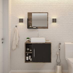 Conjunto Balcão C/cuba Q32 E Espelheira Soft 600 Carvalho Dark C/branco Chess Carvalho Dark C/preto ônix