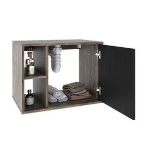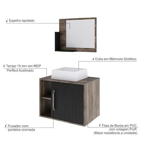 Conjunto Balcão C-cuba Q32 E Espelheira Soft 600 Carvalho Dark C-branco Chess Carvalho Dark C-preto ônix