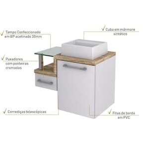 Sobre o ProdutoConjunto Balcão C/Cuba Q32 Legno 630 Perffect AcetinadoDescrição do Produto:O Conjunto Balcão C/Cuba Legno 630 é um produto compacto, de design contemporâneo e minimalista, projetado para se encaixar no seu espaço, composto por um gabinete com gaveta lateral e tampo de apoio de vidro 10mm, além da cuba, sendo perfeito para organizar suas coisas e fazer parte da decoração do seu linha Legno combina a leveza do branco e detalhes em vidro com tons amadeirados, conferindo uma personalidade contemporânea aos móveis de design minimalista e traços retos. Produtos que aliam funcionalidade e praticidade ao seu dia a dia são características marcantes desta coleção!Itens Inclusos:1 Conjunto Balcão C/CubaDimensões dos Produtos:O Gabinete Legno 630 GTLG630 possui 01 porta e 01 gaveta lateral, além do tampo de apoio em vidro 10mm.: x 65 x 43 cmCuba 33 x 30 x 10 cmInformações Logísticas (Comp. X Prof. X Alt.) 47 x 47 x 55 cm - Peso: 24,12 KgPeso Total: 24,12 KgObservações:Não acompanha acessórios decorativos. Imagens meramente ilustrativas.Informações Técnicas / Características:- Cor do Produto: Perffect Acetinado- Cor do Predominante: Branco- Marca: Compace- Modelo: GCLG630- Linha: Legno- Material: Mdp - Acabamento: Perffect Acetinado- Escala de Brilho: Fosco- Fita de Borda: Pvc- Possui Portas: 1- Tipo de Porta: Bater- Tipo da Dobradiça: Metálica- Possui Gavetas: 1- Tipo da Corrediça: Telescópica- Possui Chave: Não- Peso Máximo por Gaveta: 3 kg- Material do Puxador: Abs- Possui Prateleiras: 1- Peso Máximo por Prateleira: 4 kg- Possui Pés: Não, suspenso - Possui Espelho: Não- Possui Vidro: Sim- Acompanha Cuba / Lavatório: Sim, de Mármore Sintético- Furação para Cuba / Lavatório: Não- Tipo da Cuba: Apoio- Cor da Cuba: Branca- Suporta Até (kg): 19 kg - Peso Lí.: 41,11Kg- Recomendações de Uso, Manutenção e Limpeza: Para a limpeza, utilize flanela seca ou pano macio levemente umedecido em água. Utilize um pano seco em seguida. Evite com produtos químicos (solventes, thinner, acetona, etc) e não utilize nenhum tipo de esponja de aço.- Necessita de Montagem: Sim / Acompanha Manual de Montagem- Complexidade da Montagem: Média: pode ser montado por mais de uma pessoa e/ou necessite de maior conhecimento para montagem.- Garantia: 6 meses Material: Mdp | Acabamento: Perffect Acetinado | Escala de Brilho: Fosco | Fita de Borda: Pvc | Possui Portas: 1 | Tipo de Porta: Bater | Tipo da Dobradiça: Metálica | Quantidade máxima de pedido: Comprimento | 65: Largura | Limite de unidades por venda: É possível comprar até 1 unidade por venda. | 50: Profundidade | 43: Preço tabelado | | Componentes incluídos: | Certificação de teste externa: | Baterias são necessárias?: | Cor: | Palavras-chave de Pesquisa: | Principais Características do Produto 2: | Principais Características do Produto 0: | Principais Características do Produto 1: | Fabricante: | Is Fragile: | Dimensões do item P x L x A: | Peso do item: | Exige montagem: | da peça: | do modelo: | Quantidade de itens: | de caixas: Cor: Branco Chess C/Carvalho