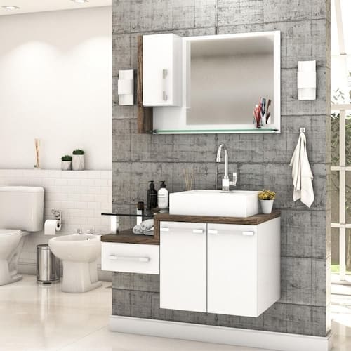 Sobre o ProdutoConjunto Balcão C/Cuba Q39 e Espelheira Legno 830 Branco ChessDescrição do Produto:O Conjunto (Balcão + Cuba + Espelheira) Legno KTLG830 é um produto compacto, de design contemporâneo e minimalista, projetado para se encaixar no seu espaço, composto por um gabinete com gaveta lateral e tampo de apoio de vidro 10mm. A espelheira possui 01 porta, espelho lapidado e 01 prateleira de vidro 10mm, sendo perfeita para organizar suas coisas e fazer parte da decoração do seu linha Legno combina a leveza do branco e detalhes em vidro com tons amadeirados, conferindo uma personalidade contemporânea aos móveis de design minimalista e traços retos. Produtos que aliam funcionalidade e praticidade ao seu dia a dia são características marcantes desta coleção!Itens Inclusos:1 Conjunto Balcão C/Cuba e EspelheiraDimensões dos Produtos:Gabinete: 83 x 43 x 51 cmEspelheira: 77 x 15 x 54 cmCuba 40 x 37,5 x 10 cmInformações Logísticas (Comp. X Prof. X Alt.) 60 x 50,5 x 58 cm - Peso: 27,84 81 x 19 x 59 cm - Peso: 10,685 KgPeso Total: 38,525 KgObservações:Não acompanha acessórios decorativos. Imagens meramente ilustrativas.Informações Técnicas / Características:- Cor do Produto: Branco Chess- Cor do Predominante: Branco- Marca: Compace- Modelo: KTLG830- Linha: Legno- Material: Mdp - Acabamento: Perffect Acetinado- Escala de Brilho: Fosco- Fita de Borda: Pvc- Possui Portas: 3- Tipo de Porta: Bater- Tipo da Dobradiça: Metálica- Possui Gavetas: 1- Tipo da Corrediça: Telescópica- Possui Chave: Não- Peso Máximo por Gaveta: 3 kg- Material do Puxador: Abs- Possui Prateleiras: 2- Peso Máximo por Prateleira: 1 kg Espelheira / 4 kg Balcão- Possui Pés: Não, suspenso - Possui Espelho: Sim- Possui Vidro: Sim- Acompanha Cuba / Lavatório: Sim, de Mármore Sintético- Furação para Cuba / Lavatório: Não- Tipo da Cuba: Apoio- Cor da Cuba: Branca- Suporta Até (kg): 20 kg - Peso Lí.: 35,49Kg- Recomendações de Uso, Manutenção e Limpeza: Para a limpeza, utilize flanela seca ou pano macio levemente umedecido em água. Utilize um pano seco em seguida. Evite com produtos químicos (solventes, thinner, acetona, etc) e não utilize nenhum tipo de esponja de aço.- Necessita de Montagem: Sim / Acompanha Manual de Montagem- Complexidade da Montagem: Média: pode ser montado por mais de uma pessoa e/ou necessite de maior conhecimento para montagem.- Garantia: 6 meses Material: Mdp | Acabamento: Perffect Acetinado | Escala de Brilho: Fosco | Fita de Borda: Pvc | Possui Portas: 3 | Tipo de Porta: Bater | Tipo da Dobradiça: Metálica | Tipo de Produto: Gabinete de Banheiro | Fabricante: Compace | Limite de unidades por venda: É possível comprar até 1 unidade por venda. | Quantidade máxima de pedido: 1 | Comprimento: 83 | Largura: 43 | Altura: 51 | Profundidade: 43 | Preço tabelado: | Cor: Multicolorido | Certificação de teste externa: Não Aplicável | Baterias são necessárias?: false | Palavras-chave de Pesquisa: Não aplicável | Fonte de energia: Não aplicável | Peso do item: | Exige montagem: | da peça: | Componentes incluídos: | Dimensões do item P x L x A: | Principais Características do Produto 1: | Principais Características do Produto 2: | Principais Características do Produto 0: | Is Fragile: | de caixas: | Quantidade de itens: | do modelo: Cor: Branco Chess C/Carvalho Dark