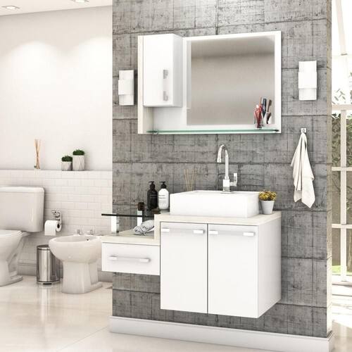 Sobre o ProdutoConjunto Balcão C/Cuba Q39 e Espelheira Legno 830 Branco ChessDescrição do Produto:O Conjunto (Balcão + Cuba + Espelheira) Legno KTLG830 é um produto compacto, de design contemporâneo e minimalista, projetado para se encaixar no seu espaço, composto por um gabinete com gaveta lateral e tampo de apoio de vidro 10mm. A espelheira possui 01 porta, espelho lapidado e 01 prateleira de vidro 10mm, sendo perfeita para organizar suas coisas e fazer parte da decoração do seu linha Legno combina a leveza do branco e detalhes em vidro com tons amadeirados, conferindo uma personalidade contemporânea aos móveis de design minimalista e traços retos. Produtos que aliam funcionalidade e praticidade ao seu dia a dia são características marcantes desta coleção!Itens Inclusos:1 Conjunto Balcão C/Cuba e EspelheiraDimensões dos Produtos:Gabinete: 83 x 43 x 51 cmEspelheira: 77 x 15 x 54 cmCuba 40 x 37,5 x 10 cmInformações Logísticas (Comp. X Prof. X Alt.) 60 x 50,5 x 58 cm - Peso: 27,84 81 x 19 x 59 cm - Peso: 10,685 KgPeso Total: 38,525 KgObservações:Não acompanha acessórios decorativos. Imagens meramente ilustrativas.Informações Técnicas / Características:- Cor do Produto: Branco Chess- Cor do Predominante: Branco- Marca: Compace- Modelo: KTLG830- Linha: Legno- Material: Mdp - Acabamento: Perffect Acetinado- Escala de Brilho: Fosco- Fita de Borda: Pvc- Possui Portas: 3- Tipo de Porta: Bater- Tipo da Dobradiça: Metálica- Possui Gavetas: 1- Tipo da Corrediça: Telescópica- Possui Chave: Não- Peso Máximo por Gaveta: 3 kg- Material do Puxador: Abs- Possui Prateleiras: 2- Peso Máximo por Prateleira: 1 kg Espelheira / 4 kg Balcão- Possui Pés: Não, suspenso - Possui Espelho: Sim- Possui Vidro: Sim- Acompanha Cuba / Lavatório: Sim, de Mármore Sintético- Furação para Cuba / Lavatório: Não- Tipo da Cuba: Apoio- Cor da Cuba: Branca- Suporta Até (kg): 20 kg - Peso Lí.: 35,49Kg- Recomendações de Uso, Manutenção e Limpeza: Para a limpeza, utilize flanela seca ou pano macio levemente umedecido em água. Utilize um pano seco em seguida. Evite com produtos químicos (solventes, thinner, acetona, etc) e não utilize nenhum tipo de esponja de aço.- Necessita de Montagem: Sim / Acompanha Manual de Montagem- Complexidade da Montagem: Média: pode ser montado por mais de uma pessoa e/ou necessite de maior conhecimento para montagem.- Garantia: 6 meses Material: Mdp | Acabamento: Perffect Acetinado | Escala de Brilho: Fosco | Fita de Borda: Pvc | Possui Portas: 3 | Tipo de Porta: Bater | Tipo da Dobradiça: Metálica | Tipo de Produto: Gabinete de Banheiro | Fabricante: Compace | Limite de unidades por venda: É possível comprar até 1 unidade por venda. | Quantidade máxima de pedido: 1 | Comprimento: 83 | Largura: 43 | Altura: 51 | Profundidade: 43 | Preço tabelado: | Cor: Multicolorido | Certificação de teste externa: Não Aplicável | Baterias são necessárias?: false | Palavras-chave de Pesquisa: Não aplicável | Fonte de energia: Não aplicável | Peso do item: | Exige montagem: | da peça: | Componentes incluídos: | Dimensões do item P x L x A: | Principais Características do Produto 1: | Principais Características do Produto 2: | Principais Características do Produto 0: | Is Fragile: | de caixas: | Quantidade de itens: | do modelo: Cor: Branco Chess C/Snow