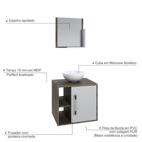 Sobre o ProdutoConjunto Balcão C/Cuba R30 e Espelheira Soft 500 Branco ChessDescrição do Produto:O Conjunto Balcão C/Cuba e Espelheira Soft 500 KTSF500 tem design compacto, perfeito para pequenos espaços, conta com uma prateleira lateral e uma cuba de apoio, além da linha Basic traz móveis funcionais e de design tradicional, aliando simplicidade e estilo para seu ambiente de banheiro!Itens Inclusos:1 Conjunto Balcão C/Cuba e EspelheiraDimensões dos Produtos:Gabinete: 50 x 40 x 45 cmEspelheira: 40 x 10 x 42 cmCuba 30,5 x 30,5 x 12,5 cmInformações Logísticas (Comp. X Prof. X Alt.) 54 x 42 x 28 cm - Peso: 18,58 KgPeso Total: 18,58 KgObservações:Não acompanha acessórios decorativos. Imagens meramente ilustrativas.Informações Técnicas / Características:- Cor do Produto: Branco Chess- Cor do Predominante: Branco- Marca: Compace- Modelo: KTSF500- Linha: Basic- Material: Mdp - Acabamento: Perffect Acetinado- Escala de Brilho: Fosco- Fita de Borda: Pvc- Possui Portas: 1- Tipo de Porta: Bater- Tipo da Dobradiça: Metálica - Material do Puxador: Abs- Possui Prateleiras: 2- Peso Máximo por Prateleira: 1 kg Espelheira / 3 kg Balcão- Possui Pés: Não, suspenso - Possui Espelho: Sim- Possui Vidro: Sim- Acompanha Cuba / Lavatório: Sim, de Mármore Sintético- Furação para Cuba / Lavatório: Não- Tipo da Cuba: Apoio- Cor da Cuba: Branca- Suporta Até (kg): 16 kg - Peso Lí.: 17,35Kg- Recomendações de Uso, Manutenção e Limpeza: Para a limpeza, utilize flanela seca ou pano macio levemente umedecido em água. Utilize um pano seco em seguida. Evite com produtos químicos (solventes, thinner, acetona, etc) e não utilize nenhum tipo de esponja de aço.- Necessita de Montagem: Sim / Acompanha Manual de Montagem- Complexidade da Montagem: Média: pode ser montado por mais de uma pessoa e/ou necessite de maior conhecimento para montagem.- Garantia: 6 meses Material: Mdp | Acabamento: Perffect Acetinado | Escala de Brilho: Fosco | Fita de Borda: Pvc | Possui Portas: 1 | Tipo de Porta: Bater | Tipo da Dobradiça: Metálica | Limite de unidades por venda: É possível comprar até 1 unidade por venda. | Tipo de produto: Gabinete de banheiro | Quantidade máxima de pedido: 1 | Fabricante: Compace | Comprimento: 50 | Largura: 40 | Altura: 45 | Profundidade: 45 | Preço trabelado: | Componentes incluídos: | Principais Características do Produto 0: | Baterias são necessárias?: | Principais Características do Produto 2: | Cor: | Principais Características do Produto 1: | Certificação de teste externa: | Palavras-chave de Pesquisa: | Is Fragile: | Dimensões do item P x L x A: | Exige montagem: | da peça: | Peso do item: | do modelo: | Quantidade de itens: | de caixas: Cor: Carvalho Dark C/Branco Chess