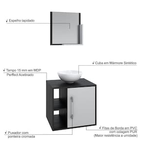 Conjunto Balcão C-cuba R30 E Espelheira Soft 500 Preto ônix Preto ônix C-branco Chess