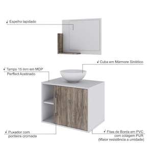 Sobre o ProdutoConjunto Balcão C/Cuba R30 e Espelheira Soft 600 Branco ChessDescrição do Produto:O Conjunto Balcão C/Cuba e Espelheira Soft 600 KTSF600 tem design compacto, perfeito para pequenos espaços, conta com uma prateleira lateral e uma cuba de apoio, além da linha Basic traz móveis funcionais e de design tradicional, aliando simplicidade e estilo para seu ambiente de banheiro!Itens Inclusos:1 Conjunto Balcão C/Cuba e EspelheiraDimensões dos Produtos:Gabinete: 60 x 40 x 45 cmEspelheira: 53 x 10,5 x 42 cmCuba 30,5 x 30,5 x 12,5 cmInformações Logísticas (Comp. X Prof. X Alt.) 64 x 45 x 26 cm - Peso: 20,14 KgPeso Total: 20,14 KgObservações:Não acompanha acessórios decorativos. Imagens meramente ilustrativas.Informações Técnicas / Características:- Cor do Produto: Branco Chess- Cor do Predominante: Branco- Marca: Compace- Modelo: KTSF600- Linha: Basic- Material: Mdp - Acabamento: Perffect Acetinado- Escala de Brilho: Fosco- Fita de Borda: Pvc- Possui Portas: 1- Tipo de Porta: Bater- Tipo da Dobradiça: Metálica - Material do Puxador: Abs- Possui Prateleiras: 2- Peso Máximo por Prateleira: 1 kg Espelheira / 3 kg Balcão- Possui Pés: Não, suspenso - Possui Espelho: Sim- Possui Vidro: Sim- Acompanha Cuba / Lavatório: Sim, de Mármore Sintético- Furação para Cuba / Lavatório: Não- Tipo da Cuba: Apoio- Cor da Cuba: Branca- Suporta Até (kg): 16 kg - Peso Lí.: 18,72Kg- Recomendações de Uso, Manutenção e Limpeza: Para a limpeza, utilize flanela seca ou pano macio levemente umedecido em água. Utilize um pano seco em seguida. Evite com produtos químicos (solventes, thinner, acetona, etc) e não utilize nenhum tipo de esponja de aço.- Necessita de Montagem: Sim / Acompanha Manual de Montagem- Complexidade da Montagem: Média: pode ser montado por mais de uma pessoa e/ou necessite de maior conhecimento para montagem.- Garantia: 6 meses Material: Mdp | Acabamento: Perffect Acetinado | Escala de Brilho: Fosco | Fita de Borda: Pvc | Possui Portas: 1 | Tipo de Porta: Bater | Tipo da Dobradiça: Metálica | Limite de unidades por venda: É possível comprar até 1 unidade por venda. | Comprimento: 60 | Largura: 40 | Quantidade máxima de pedido: 1 | Altura: 45 | Profundidade: 40 | Preço Tabelado: | Cor: Multicolorido | Certificação de teste externa: Não Aplicável | Baterias são necessárias?: false | Palavras-chave de Pesquisa: Não aplicável | Fonte de energia: Não aplicável | Fabricante: Compace | Principais Características do Produto 0: | Dimensões do item P x L x A: | Exige montagem: | Is Fragile: | Principais Características do Produto 2: | da peça: | Principais Características do Produto 1: | Componentes incluídos: | Peso do item: | do modelo: | de caixas: | Quantidade de itens: Cor: Branco Chess C/Carvalho Dark