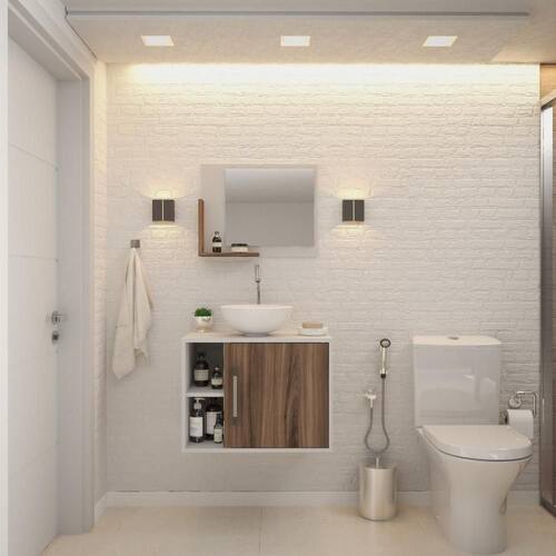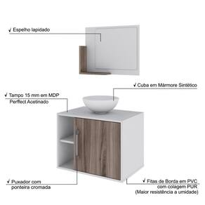 Sobre o ProdutoConjunto Balcão C/Cuba R30 e Espelheira Soft 600 Branco ChessDescrição do Produto:O Conjunto Balcão C/Cuba e Espelheira Soft 600 KTSF600 tem design compacto, perfeito para pequenos espaços, conta com uma prateleira lateral e uma cuba de apoio, além da linha Basic traz móveis funcionais e de design tradicional, aliando simplicidade e estilo para seu ambiente de banheiro!Itens Inclusos:1 Conjunto Balcão C/Cuba e EspelheiraDimensões dos Produtos:Gabinete: 60 x 40 x 45 cmEspelheira: 53 x 10,5 x 42 cmCuba 30,5 x 30,5 x 12,5 cmInformações Logísticas (Comp. X Prof. X Alt.) 64 x 45 x 26 cm - Peso: 20,14 KgPeso Total: 20,14 KgObservações:Não acompanha acessórios decorativos. Imagens meramente ilustrativas.Informações Técnicas / Características:- Cor do Produto: Branco Chess- Cor do Predominante: Branco- Marca: Compace- Modelo: KTSF600- Linha: Basic- Material: Mdp - Acabamento: Perffect Acetinado- Escala de Brilho: Fosco- Fita de Borda: Pvc- Possui Portas: 1- Tipo de Porta: Bater- Tipo da Dobradiça: Metálica - Material do Puxador: Abs- Possui Prateleiras: 2- Peso Máximo por Prateleira: 1 kg Espelheira / 3 kg Balcão- Possui Pés: Não, suspenso - Possui Espelho: Sim- Possui Vidro: Sim- Acompanha Cuba / Lavatório: Sim, de Mármore Sintético- Furação para Cuba / Lavatório: Não- Tipo da Cuba: Apoio- Cor da Cuba: Branca- Suporta Até (kg): 16 kg - Peso Lí.: 18,72Kg- Recomendações de Uso, Manutenção e Limpeza: Para a limpeza, utilize flanela seca ou pano macio levemente umedecido em água. Utilize um pano seco em seguida. Evite com produtos químicos (solventes, thinner, acetona, etc) e não utilize nenhum tipo de esponja de aço.- Necessita de Montagem: Sim / Acompanha Manual de Montagem- Complexidade da Montagem: Média: pode ser montado por mais de uma pessoa e/ou necessite de maior conhecimento para montagem.- Garantia: 6 meses Material: Mdp | Acabamento: Perffect Acetinado | Escala de Brilho: Fosco | Fita de Borda: Pvc | Possui Portas: 1 | Tipo de Porta: Bater | Tipo da Dobradiça: Metálica | Limite de unidades por venda: É possível comprar até 1 unidade por venda. | Comprimento: 60 | Largura: 40 | Quantidade máxima de pedido: 1 | Altura: 45 | Profundidade: 40 | Preço Tabelado: | Cor: Multicolorido | Certificação de teste externa: Não Aplicável | Baterias são necessárias?: false | Palavras-chave de Pesquisa: Não aplicável | Fonte de energia: Não aplicável | Fabricante: Compace | Principais Características do Produto 0: | Dimensões do item P x L x A: | Exige montagem: | Is Fragile: | Principais Características do Produto 2: | da peça: | Principais Características do Produto 1: | Componentes incluídos: | Peso do item: | do modelo: | de caixas: | Quantidade de itens: Cor: Branco Chess C/Nogal