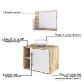 Sobre o ProdutoConjunto Balcão C/Cuba R30 e Espelheira Soft 600 Branco ChessDescrição do Produto:O Conjunto Balcão C/Cuba e Espelheira Soft 600 KTSF600 tem design compacto, perfeito para pequenos espaços, conta com uma prateleira lateral e uma cuba de apoio, além da linha Basic traz móveis funcionais e de design tradicional, aliando simplicidade e estilo para seu ambiente de banheiro!Itens Inclusos:1 Conjunto Balcão C/Cuba e EspelheiraDimensões dos Produtos:Gabinete: 60 x 40 x 45 cmEspelheira: 53 x 10,5 x 42 cmCuba 30,5 x 30,5 x 12,5 cmInformações Logísticas (Comp. X Prof. X Alt.) 64 x 45 x 26 cm - Peso: 20,14 KgPeso Total: 20,14 KgObservações:Não acompanha acessórios decorativos. Imagens meramente ilustrativas.Informações Técnicas / Características:- Cor do Produto: Branco Chess- Cor do Predominante: Branco- Marca: Compace- Modelo: KTSF600- Linha: Basic- Material: Mdp - Acabamento: Perffect Acetinado- Escala de Brilho: Fosco- Fita de Borda: Pvc- Possui Portas: 1- Tipo de Porta: Bater- Tipo da Dobradiça: Metálica - Material do Puxador: Abs- Possui Prateleiras: 2- Peso Máximo por Prateleira: 1 kg Espelheira / 3 kg Balcão- Possui Pés: Não, suspenso - Possui Espelho: Sim- Possui Vidro: Sim- Acompanha Cuba / Lavatório: Sim, de Mármore Sintético- Furação para Cuba / Lavatório: Não- Tipo da Cuba: Apoio- Cor da Cuba: Branca- Suporta Até (kg): 16 kg - Peso Lí.: 18,72Kg- Recomendações de Uso, Manutenção e Limpeza: Para a limpeza, utilize flanela seca ou pano macio levemente umedecido em água. Utilize um pano seco em seguida. Evite com produtos químicos (solventes, thinner, acetona, etc) e não utilize nenhum tipo de esponja de aço.- Necessita de Montagem: Sim / Acompanha Manual de Montagem- Complexidade da Montagem: Média: pode ser montado por mais de uma pessoa e/ou necessite de maior conhecimento para montagem.- Garantia: 6 meses Material: Mdp | Acabamento: Perffect Acetinado | Escala de Brilho: Fosco | Fita de Borda: Pvc | Possui Portas: 1 | Tipo de Porta: Bater | Tipo da Dobradiça: Metálica | Limite de unidades por venda: É possível comprar até 1 unidade por venda. | Comprimento: 60 | Largura: 40 | Quantidade máxima de pedido: 1 | Altura: 45 | Profundidade: 40 | Preço Tabelado: | Cor: Multicolorido | Certificação de teste externa: Não Aplicável | Baterias são necessárias?: false | Palavras-chave de Pesquisa: Não aplicável | Fonte de energia: Não aplicável | Fabricante: Compace | Principais Características do Produto 0: | Dimensões do item P x L x A: | Exige montagem: | Is Fragile: | Principais Características do Produto 2: | da peça: | Principais Características do Produto 1: | Componentes incluídos: | Peso do item: | do modelo: | de caixas: | Quantidade de itens: Cor: Carvalho C/Branco Chess