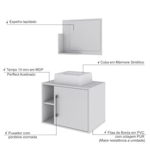 Sobre o ProdutoConjunto Balcão C/Cuba Q32 e Espelheira Soft 600 Branco ChessDescrição do Produto:O Conjunto Balcão C/Cuba e Espelheira Soft 600 KTSF600 tem design compacto, perfeito para pequenos espaços, conta com uma prateleira lateral e uma cuba de apoio, além da linha Basic traz móveis funcionais e de design tradicional, aliando simplicidade e estilo para seu ambiente de banheiro!Itens Inclusos:1 Conjunto Balcão C/Cuba e EspelheiraDimensões dos Produtos:Gabinete: 60 x 40 x 45 cmEspelheira: 53 x 10,5 x 42 cmCuba 33 x 30 x 10 cmInformações Logísticas (Comp. X Prof. X Alt.) 64 x 45 x 26 cm - Peso: 21,04 KgPeso Total: 21,04 KgObservações:Não acompanha acessórios decorativos. Imagens meramente ilustrativas.Informações Técnicas / Características:- Cor do Produto: Branco Chess- Cor do Predominante: Branco- Marca: Compace- Modelo: KTSF600- Linha: Basic- Material: Mdp - Acabamento: Perffect Acetinado- Escala de Brilho: Fosco- Fita de Borda: Pvc- Possui Portas: 1- Tipo de Porta: Bater- Tipo da Dobradiça: Metálica - Material do Puxador: Abs- Possui Prateleiras: 2- Peso Máximo por Prateleira: 1 kg Espelheira / 3 kg Balcão- Possui Pés: Não, suspenso - Possui Espelho: Sim- Possui Vidro: Sim- Acompanha Cuba / Lavatório: Sim, de Mármore Sintético- Furação para Cuba / Lavatório: Não- Tipo da Cuba: Apoio- Cor da Cuba: Branca- Suporta Até (kg): 16 kg - Peso Lí.: 19,62Kg- Recomendações de Uso, Manutenção e Limpeza: Para a limpeza, utilize flanela seca ou pano macio levemente umedecido em água. Utilize um pano seco em seguida. Evite com produtos químicos (solventes, thinner, acetona, etc) e não utilize nenhum tipo de esponja de aço.- Necessita de Montagem: Sim / Acompanha Manual de Montagem- Complexidade da Montagem: Média: pode ser montado por mais de uma pessoa e/ou necessite de maior conhecimento para montagem.- Garantia: 6 meses Material: Mdp | Acabamento: Perffect Acetinado | Escala de Brilho: Fosco | Fita de Borda: Pvc | Possui Portas: 1 | Tipo de Porta: Bater | Tipo da Dobradiça: Metálica | cor da cuba: Branco | Limite de unidades por venda: É possível comprar até 1 unidade por venda. | Quantidade máxima de pedido: 1 | Comprimento: 60 | Largura: 40 | Altura: 45 | Profundidade: 40 | Preço Tabelado: 304.60000000000002 | Cor: Multicolorido | Certificação de teste externa: Não Aplicável | Baterias são necessárias?: false | Palavras-chave de Pesquisa: Não aplicável | Fonte de energia: Não aplicável | Fabricante: Compace | Componentes incluídos: | Principais Características do Produto 2: | Principais Características do Produto 1: | Peso do item: | Principais Características do Produto 0: | Dimensões do item P x L x A: | Is Fragile: | da peça: | Exige montagem: | do modelo: | de caixas: | Quantidade de itens: Cor: Branco Chess C/Branco Chess