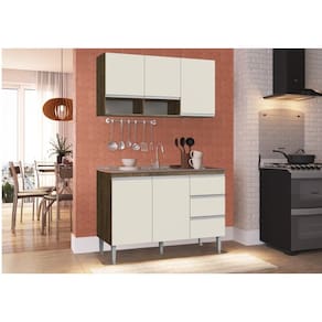 Preparamos para você esse lindo kit Cozinha Compacta Balcão+Aéreo na cor Itauba Crema uma opção super moderna e que deixará seu ambiente com uma cara renovada e com espaços adequados para deixar tudo no lugar. Desenvolvido para quem gosta de praticidade e aconchego. Perfeito para armazenar utensílios, talheres, toalhas e panos de prato. Aproveite!! Beleza e praticidade para o seu dia-a-dia!! Turbine a funcionalidade e a otimização do espaço da sua cozinha com beleza. Estrutura do Móvel fabricado 100% em MDP de 15 mm, Pintura em UV que garante maior resistência, durabilidade e acabamento, além disso para completar possui puxadores em alúminio para maior qualidade e beleza. Balcão Pia não acompanha Pia inox e nem objetos de decoração e utensílios. MEDIDAS:- Altura do Balcão:84cm | Largura do Balcão: 120 cm | Profundidade do Balcão: 52 cm - Altura do Aéreo: 60 cm | Largura do Aéreo: 120 cm | Profundidade do Aéreo: 32 cm ITENS INCLUSOS - Balcão: 2 Portas - 3 Gavetas com corrediças metálicas - 1 Prateleira interna - Aéreo: 3 Portas e 2 Nichos ( não possui prateleira interna) DADOS TÉCNICOS:- Peso Total Aproximado: 60 kg - Dobradiças: Metálicas - Puxador: alúmínio- Capacidade de montagem: Média - Pés Plástico com regulagem de altura MATERIAL:- Material da estrutura: 100%MDP de 15mm- Pintura: UV LIMPEZA- Limpar com flanela ou pano macio seco, não utilizar produtos abrasivos, desengordurantes, álcool ou solvente.- Limpeza diária com flanela seca para remoção do pó.- Nunca utilizar materiais abrasivos como esponja sintética, esponja de aço, saponáceos.- Secar rapidamente qualquer líquido.INFORMAÇÕES ADICIONAISGarantia de 3 meses.As imagens são ilustrativas, não acompanham objetos de decoração e eletrônicos.Pode haver alguma diferença de tonalidade entre a imagem e o produto real, por conta do tratamento de imagens e a calibração de cores do seu monitor.A montagem será de responsabilidade do comprador, não nos responsabilizamos, no ato da entrega, por subir escadas/elevadores ou transporte por guincho em apartamentos.Eventuais despesas são de responsabilidade do comprador.Confira as dimensões deste produto e certifique-se de que passará normalmente por supostos elevadores, portas, escadas e/ou corredores de sua residência.