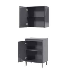 Conjunto Balcao E Armario Areo Cinza Balcão Micro-ondas e Armário Aéreo 2 Portas