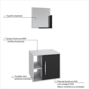 O Conjunto Balcão e Espelheira Soft 500 GESF500 tem design compacto, perfeito para pequenos espaços, conta com uma prateleira lateral e espelheira.