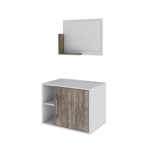 O Conjunto Balcão e Espelheira Soft 600 GESF600 tem design compacto, perfeito para pequenos espaços, conta com uma prateleira lateral e uma cuba de apoio, além da espelheira.