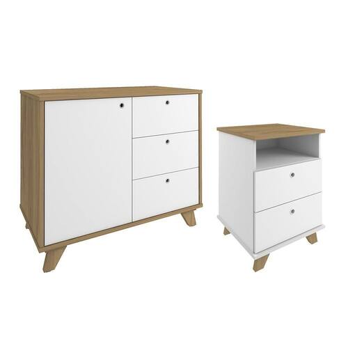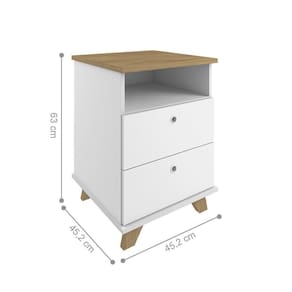 Destacado pelos delicados pezinhos no estilo retrô, contém feltro auto adesivo para proteger o piso. Possui duas gavetas com corrediças metálicas e um nicho, facilitando a organização de objetos, celulares, livros e cadernos.