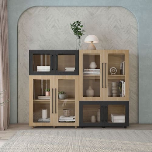 O(a) Conjunto Balcão Modulado 8 Portas Mia Riveira/Preto - Pnr Móveis é produzido em 100% MDF na escala de brilho Fosca com Textura, e possui um grau de dificuldade de montagem: Médio.
