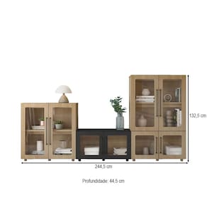 O(a) Conjunto Balcão Modulado Mia 8 Portas Riveira/Preto - Pnr Móveis é produzido em 100% MDF na escala de brilho Fosca com Textura, e possui um grau de dificuldade de montagem: Médio.