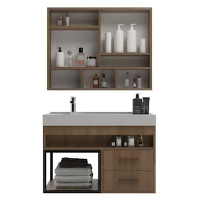 O Conjunto para banheiro Avant da Belizze vai combinar com o seu bom gosto. Compacto, prático e moderno, pois conta com uma variedade de materiais, metal e todo charme do MDF de 15cm. Ele tem 80cm de largura, e profundidade de 40cm. Já vem com uma moderna espelheira de 80cm de largura por 68cm de altura deixando tudo mais elegante e combinando com seu ambiente. Os puxadores são um detalhe especial, e remetem à praticidade. Além de tudo isso, conta com uma estrutura metálica, que além de prático dá um detalhe de beleza adicional, afinal, sua casa merece. Acabamento da Cuba: Polido Acabamento da Gaveta: Fosco Acabamento da Porta: MDF Acabamento da Prateleira: BP Acompanha Cuba: Sim Acompanha Gaveteiro: Sim Acompanha Manual de Instalação: Sim Acompanha Parafusos Para Fixação Na Parede: Não Acompanha Tampo: Sim Acompanha Válvula: Não Ambiente Principal: Banheiro codigo_ean: 7900288055910 Complexidade da Montagem: Baixa: pode ser montado por uma pessoa sozinha Cor: Noce Cor da Cuba: Branco Cor da Gaveta: Marrom Cor do Produto: Noce Cor Interna: noce/noce Escala de Brilho: Fosco Escala de Brilho da Porta: Fosco Escala de Brilho da Prateleira: Fosco Espessura do Espelho: 3 mm Formato do Espelho: Retangular Formato Espelheira: Retangular Furação para Cuba e Torneira: Sim Gaveta com Chave: Não Itens Inclusos: 1 gabinete, 1 cuba, 1 espelheira e 1 tubo metálico Manual de Montagem e Instalação: https://product-hub-prd.madeiramadeira.com.br/975941/documents/4b4a3dd9-191e-4c06-9a45-dd91def165ff265562156651738171793679.pdf Marca: Belizze Material da Cuba: Mármore Sintético Material da Gaveta: MDF Material da Porta: MDF Material da Prateleira: MDF Material do Tampo: Mármore Sintético Material Principal: MDF/Madeira Medida da Cuba (C x L x P): 7 x 40 x 78,5 Medida da Espelheira (A x L x P): 68x80x12 Medida do Gabinete (A x L x P): 56x80x40 Necessita Montagem: Sim Origem do Produto: Nacional Peso: 34,3 kg Peso Máximo por Gaveta: 30 kg Peso Máximo por Prateleira: 30 kg Possui Espelheira: Sim Possui Gabinete: Sim Possui iluminação: Não Possui Nichos: Não Possui Pés: Suspenso Possui Porta de Vidro: Não Possui Rodízio: Não Possui Sifão: Não Possui Tampo: Sim Possui Tampo de Vidro: Não Produto Montado: Sim Quantidade de Espelhos: 02 Espelhos com Tamanhos Iguais Recomendações de Uso, Manutenção e Limpeza: Retire o pó com uma flanela seca e depois utilize um pano macio umedecido com água. Não utilizar produtos químicos e abrasivos. Sistema de Montagem: Parafuso, Cavilhas, cola Suporte para Toalheiro: Não Tamanho do Espelho (A x L): 68x80 Tamanho do Gabinete: Médio: de 60cm a 80cm de largura Tipo de Corrediça da Gaveta: Metálica Telescópica Tipo de Cuba: Embutir Tipo de Dobradiça/Corrediça da Porta: Com Amortecedor Tipo de Gabinete: Gabinete Suspenso Tipo de Porta: Abrir Tipo de Puxador da Gaveta: Externo Tipo de Puxador da Porta: Não Possui