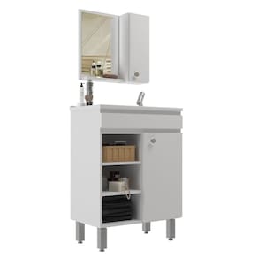 O Conjunto de Banheiro Siena tem tudo o que você precisa em um só produto. Gaveta larga de 55cm, porta com acabamento moderno e puxador ponto, Nichos organizadores e espelheiro com porta, prateleira e um aparador frontal. Possui um porta escovas no interior da porta È um produto compacto, mas com espaço de sobra para organizar tudo do seu jeito. Acompanha pés reguláveis para deixar o produto firme e nivelado, além o acabamento impecável e moderno. Acabamento da Cuba: Polido Acabamento da Porta: BP Acabamento dos Pés: ABS Acompanha Cuba: Sim Acompanha Parafusos Para Fixação Na Parede: Não Acompanha Tampo: Sim Altura dos Pés: 14,5 cm Ambiente Principal: Banheiro Complexidade da Montagem: Baixa: pode ser montado por uma pessoa sozinha Cor: Branco Cor da Cuba: Branco Cor do Produto: Branco Cor Interna: Branco Escala de Brilho: Fosco Escala de Brilho da Porta: Fosco Espessura do Espelho: 1,5 mm Formato do Espelho: Retangular Furação para Cuba e Torneira: Sim Informações Complementares: Acompanha um porta escovas Itens Inclusos: 1 gabinete, 1 cuba e 1 espelheira Manual de Especificação Técnica: https://cdn2.madeiramadeira.com.br/atributo/belizze/2049020-5665-17183711838651.pdf Manual de Montagem e Instalação: https://cdn2.madeiramadeira.com.br/atributo/belizze/2049019-5665-17183711795156.pdf Material da Cuba: Mármore Sintético Material da Porta: MDF Material do Puxador da Porta: PVC/Cromado Material do Tampo: Mármore Sintético Material dos Pés: PVC Material Principal: MDF Medida da Cuba (C x L x P): 1,5 x 55 x 34 Medida da Espelheira (A x L x P): 43 x 45 x 12 Medida do Gabinete (A x L x P): 83 x 55 x 34 Necessita Montagem: Sim Origem do Produto: Nacional Pés Reguláveis: Sim Peso: 18,9 kg Possui Espelheira: Sim Possui Gabinete: Sim Possui Gavetas: Não Possui iluminação: Não Possui Nichos: Sim Possui Pés: 04 Possui Porta de Vidro: Não Possui Portas: 01 Possui Recorte No Tampo Para Cuba: Sim Possui Recorte No Tampo Para Misturador: Não Possui Rodízio: Não Possui Sifão: Não Possui Tampo: Sim Produto Montado: Não Recomendações de Uso, Manutenção e Limpeza: Retire o pó com uma flanela seca e depois utilize um pano macio umedecido com água. Não utilizar produtos químicos e abrasivos. Sapatas Niveladoras: Não Sistema de Montagem: Parafusos, cavilhas, dobradiças metálicas, cola... Suporta Até (kg): 15 kg Suporte para Toalheiro: Não Tamanho do Espelho (A x L): 47 x 28 Tipo de Dobradiça/Corrediça da Porta: Metálica Tipo de Fixação do Espelho: Fita Dupla Face Tipo de Gabinete: Gabinete de Chão Tipo de Porta: Bater Tipo de Puxador da Porta: Externo