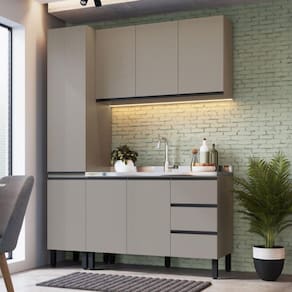 As novas cozinhas Quiditá possuem design contemporâneo. São elaboradas a partir dos projetos da nossa marca de cozinhas planejadas, Almadra. Neste formato oferecemos os módulos permitindo composições variadas para as suas necessidades. Armários com muitas facilidades, que podem ser montados do lado direito ou lado esquerdo. Proporcionando praticidade e funcionalidade, feita com materiais de alto nível, ferragens e acessórios de última geração. Projeto pensado para lhe oferecer praticidade e bem estar no seu dia a dia. Acabamento: Finish Foil Altura do Conjunto: 218.5 cm Ambiente: null Ambiente Principal: Cozinha Cor: Fume Informação Complementar: 1x Balcão para Pia 120cm 2 Portas 3 Gavetas Fume Largura: 120 cm Altura: 84 cm Peso: 48 kg Profundidade: 49 cm Necessita Montagem: Sim
