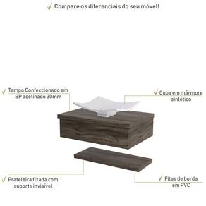 O Conjunto (Bancada + Cuba + Prateleira) Metrópole KTME605 é um produto compacto de design simples e moderno, projetado para pequenos espaços, perfeito para fazer parte da decoração do seu lavabo ou banheiro. Conta com uma cuba de apoio e uma prateleira com pinos invisíveis, além do suporte toalheiro.