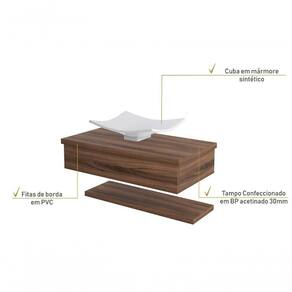 Sobre o ProdutoConjunto Bancada C/Cuba F44 e Prateleira Metrópole 805 Branco ChessDescrição do Produto:O Conjunto (Bancada + Cuba + Prateleira) Metrópole KTME805 é um produto compacto de design simples e moderno, projetado para pequenos espaços, perfeito para fazer parte da decoração do seu lavabo ou banheiro. Conta com uma cuba de apoio e uma prateleira com pinos invisíveis, além do suporte linha Metrópole é uma coleção de móveis modernos e com inúmeras possibilidades de composições, combinando design contemporâneo e muita funcionalidade. Diversas possibilidades de cores e modelos de cubas formam uma solução perfeita para as mais opções de decoração e projetos em ambientes de banheiro. É você quem decide!!!Itens Inclusos:1 Conjunto Bancada C/Cuba e PrateleiraDimensões dos Produtos:Bancada: 80 x 43 x 19 cmCuba 43,5 x 36 x 12 cmInformações Logísticas (Comp. X Prof. X Alt.) 83 x 47 x 26 cm - Peso: 17,63 KgPeso Total: 17,63 KgObservações:Não acompanha acessórios decorativos. Imagens meramente ilustrativas.Informações Técnicas / Características:- Cor do Produto: Branco Chess- Cor do Predominante: Branco- Marca: Compace- Modelo: KTME805- Linha: Metrópole- Material: Mdp - Acabamento: Perffect Acetinado- Escala de Brilho: Fosco- Fita de Borda: Pvc - Possui Gavetas: Não - Material do Puxador: Alumínio- Possui Prateleiras: 1- Peso Máximo por Prateleira: 02 kg- Possui Pés: Não, suspenso - Possui Espelho: Não - Acompanha Cuba / Lavatório: Sim, de Mármore Sintético- Furação para Cuba / Lavatório: Não- Tipo da Cuba: Apoio- Cor da Cuba: Branca- Suporta Até (kg): 12 kg - Peso Lí.: 16,56Kg- Recomendações de Uso, Manutenção e Limpeza: Para a limpeza, utilize flanela seca ou pano macio levemente umedecido em água. Utilize um pano seco em seguida. Evite com produtos químicos (solventes, thinner, acetona, etc) e não utilize nenhum tipo de esponja de aço.- Necessita de Montagem: Sim / Acompanha Manual de Montagem- Complexidade da Montagem: Média: pode ser montado por mais de uma pessoa e/ou necessite de maior conhecimento para montagem.- Garantia: 6 meses- Outras Características: Montagem ível, o suporte toalheiro pode ser montado em qualquer um dos lados. Material: Mdp | Acabamento: Perffect Acetinado | Escala de Brilho: Fosco | Fita de Borda: Pvc | Tipo de Produto: Bancada para Banheiro | Comprimento: 80 | Largura: 42 | Limite de unidades por venda: É possível comprar até 1 unidade por venda. | Altura: 19 | Quantidade máxima de pedido: 1 | Profundidade: 42 | Preço tabelado: | Cor: Multicolorido | Certificação de teste externa: Não Aplicável | Baterias são necessárias?: false | Palavras-chave de Pesquisa: Não aplicável | Fonte de energia: Não aplicável | Fabricante: Compace | Principais Características do Produto 0: | Principais Características do Produto 2: | Principais Características do Produto 1: | da peça: | Componentes incluídos: | Dimensões do item P x L x A: | Peso do item: | Is Fragile: | Exige montagem: | de caixas: | do modelo: | Quantidade de itens: Cor: Nogal