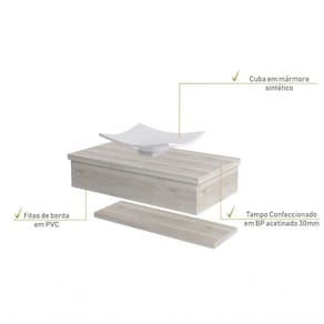 Sobre o ProdutoConjunto Bancada C/Cuba F44 e Prateleira Metrópole 805 Branco ChessDescrição do Produto:O Conjunto (Bancada + Cuba + Prateleira) Metrópole KTME805 é um produto compacto de design simples e moderno, projetado para pequenos espaços, perfeito para fazer parte da decoração do seu lavabo ou banheiro. Conta com uma cuba de apoio e uma prateleira com pinos invisíveis, além do suporte linha Metrópole é uma coleção de móveis modernos e com inúmeras possibilidades de composições, combinando design contemporâneo e muita funcionalidade. Diversas possibilidades de cores e modelos de cubas formam uma solução perfeita para as mais opções de decoração e projetos em ambientes de banheiro. É você quem decide!!!Itens Inclusos:1 Conjunto Bancada C/Cuba e PrateleiraDimensões dos Produtos:Bancada: 80 x 43 x 19 cmCuba 43,5 x 36 x 12 cmInformações Logísticas (Comp. X Prof. X Alt.) 83 x 47 x 26 cm - Peso: 17,63 KgPeso Total: 17,63 KgObservações:Não acompanha acessórios decorativos. Imagens meramente ilustrativas.Informações Técnicas / Características:- Cor do Produto: Branco Chess- Cor do Predominante: Branco- Marca: Compace- Modelo: KTME805- Linha: Metrópole- Material: Mdp - Acabamento: Perffect Acetinado- Escala de Brilho: Fosco- Fita de Borda: Pvc - Possui Gavetas: Não - Material do Puxador: Alumínio- Possui Prateleiras: 1- Peso Máximo por Prateleira: 02 kg- Possui Pés: Não, suspenso - Possui Espelho: Não - Acompanha Cuba / Lavatório: Sim, de Mármore Sintético- Furação para Cuba / Lavatório: Não- Tipo da Cuba: Apoio- Cor da Cuba: Branca- Suporta Até (kg): 12 kg - Peso Lí.: 16,56Kg- Recomendações de Uso, Manutenção e Limpeza: Para a limpeza, utilize flanela seca ou pano macio levemente umedecido em água. Utilize um pano seco em seguida. Evite com produtos químicos (solventes, thinner, acetona, etc) e não utilize nenhum tipo de esponja de aço.- Necessita de Montagem: Sim / Acompanha Manual de Montagem- Complexidade da Montagem: Média: pode ser montado por mais de uma pessoa e/ou necessite de maior conhecimento para montagem.- Garantia: 6 meses- Outras Características: Montagem ível, o suporte toalheiro pode ser montado em qualquer um dos lados. Material: Mdp | Acabamento: Perffect Acetinado | Escala de Brilho: Fosco | Fita de Borda: Pvc | Tipo de Produto: Bancada para Banheiro | Comprimento: 80 | Largura: 42 | Limite de unidades por venda: É possível comprar até 1 unidade por venda. | Altura: 19 | Quantidade máxima de pedido: 1 | Profundidade: 42 | Preço tabelado: | Cor: Multicolorido | Certificação de teste externa: Não Aplicável | Baterias são necessárias?: false | Palavras-chave de Pesquisa: Não aplicável | Fonte de energia: Não aplicável | Fabricante: Compace | Principais Características do Produto 0: | Principais Características do Produto 2: | Principais Características do Produto 1: | da peça: | Componentes incluídos: | Dimensões do item P x L x A: | Peso do item: | Is Fragile: | Exige montagem: | de caixas: | do modelo: | Quantidade de itens: Cor: Snow