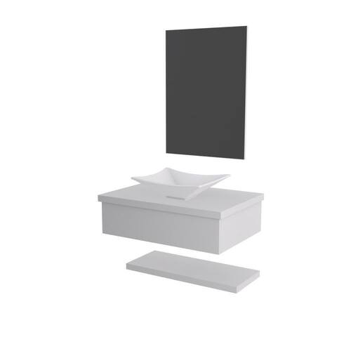 Conjunto Bancada C/cuba L30, Prateleira E Espelheira Metrópole 606 Perffect Acetinado Branco Chess