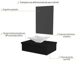 Sobre o ProdutoConjunto Bancada C/Cuba L38 e Espelheira Metrópole 601 Branco ChessDescrição do Produto:O Conjunto (Bancada + Cuba + Espelheira) Metrópole KTME601 é um produto compacto de design simples e moderno, projetado para pequenos espaços, perfeito para fazer parte da decoração do seu lavabo ou banheiro. Conta com uma cuba de apoio e uma espelheira com espelho lapidado, além do suporte linha Metrópole é uma coleção de móveis modernos e com inúmeras possibilidades de composições, combinando design contemporâneo e muita funcionalidade. Diversas possibilidades de cores e modelos de cubas formam uma solução perfeita para as mais opções de decoração e projetos em ambientes de banheiro. É você quem decide!!!Itens Inclusos:1 Conjunto Bancada C/Cuba e EspelheiraDimensões dos Produtos:Bancada: 60 x 43 x 19 cmEspelheira: 43 x 1,8 x 60 cmCuba 38,5 x 33 x 11,5 cmInformações Logísticas (Comp. X Prof. X Alt.) 63 x 47 x 26 cm - Peso: 15,72 KgPeso Total: 15,72 KgObservações:Não acompanha acessórios decorativos. Imagens meramente ilustrativas.Informações Técnicas / Características:- Cor do Produto: Branco Chess- Cor do Predominante: Branco- Marca: Compace- Modelo: KTME601- Linha: Metrópole- Material: Mdp - Acabamento: Perffect Acetinado- Escala de Brilho: Fosco- Fita de Borda: Pvc - Possui Gavetas: Não - Material do Puxador: Alumínio - Possui Pés: Não, suspenso - Possui Espelho: Sim - Acompanha Cuba / Lavatório: Sim, de Mármore Sintético- Furação para Cuba / Lavatório: Não- Tipo da Cuba: Apoio- Cor da Cuba: Branca- Suporta Até (kg): 10 kg - Peso Lí.: 14,82Kg- Recomendações de Uso, Manutenção e Limpeza: Para a limpeza, utilize flanela seca ou pano macio levemente umedecido em água. Utilize um pano seco em seguida. Evite com produtos químicos (solventes, thinner, acetona, etc) e não utilize nenhum tipo de esponja de aço.- Necessita de Montagem: Sim / Acompanha Manual de Montagem- Complexidade da Montagem: Média: pode ser montado por mais de uma pessoa e/ou necessite de maior conhecimento para montagem.- Garantia: 6 meses- Outras Características: Montagem ível, o suporte toalheiro pode ser montado em qualquer um dos lados. Material: Mdp | Acabamento: Perffect Acetinado | Escala de Brilho: Fosco | Fita de Borda: Pvc | Tipo de Produto: Bancada para Banheiro | Fabricante: Compace | Comprimento: 60 | Largura: 42 | Limite de unidades por venda: É possível comprar até 1 unidade por venda. | Altura: 19 | Quantidade máxima de pedido: 1 | Profundidade: 42 | Preço tabelado: 309.95999999999998 | Cor: Multicolorido | Certificação de teste externa: Não Aplicável | Baterias são necessárias?: false | Palavras-chave de Pesquisa: Não aplicável | Fonte de energia: Não aplicável | Principais Características do Produto 1: | Componentes incluídos: | Is Fragile: | da peça: | Peso do item: | Dimensões do item P x L x A: | Principais Características do Produto 0: | Exige montagem: | Principais Características do Produto 2: | do modelo: | de caixas: | Quantidade de itens: Cor: Preto Ônix