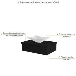 Sobre o ProdutoConjunto Bancada C/Cuba L38 Metrópole 600 Branco ChessDescrição do Produto:O Conjunto (Bancada + Cuba) Metrópole KTME600 é um produto compacto de design simples e moderno, projetado para pequenos espaços, perfeito para fazer parte da decoração do seu lavabo ou banheiro. Conta com uma cuba de apoio, além do suporte linha Metrópole é uma coleção de móveis modernos e com inúmeras possibilidades de composições, combinando design contemporâneo e muita funcionalidade. Diversas possibilidades de cores e modelos de cubas formam uma solução perfeita para as mais opções de decoração e projetos em ambientes de banheiro. É você quem decide!!!Itens Inclusos:1 Conjunto Bancada C/CubaDimensões dos Produtos:Bancada: 60 x 43 x 19 cmCuba 38,5 x 33 x 11,5 cmInformações Logísticas (Comp. X Prof. X Alt.) 63 x 47 x 26 cm - Peso: 11,55 KgPeso Total: 11,55 KgObservações:Não acompanha acessórios decorativos. Imagens meramente ilustrativas.Informações Técnicas / Características:- Cor do Produto: Branco Chess- Cor do Predominante: Branco- Marca: Compace- Modelo: KTME600- Linha: Metrópole- Material: Mdp - Acabamento: Perffect Acetinado- Escala de Brilho: Fosco- Fita de Borda: Pvc - Possui Gavetas: Não - Material do Puxador: Alumínio - Possui Pés: Não, suspenso - Possui Espelho: Não - Acompanha Cuba / Lavatório: Sim, de Mármore Sintético- Furação para Cuba / Lavatório: Não- Tipo da Cuba: Apoio- Cor da Cuba: Branca- Suporta Até (kg): 10 kg - Peso Lí.: 10,65Kg- Recomendações de Uso, Manutenção e Limpeza: Para a limpeza, utilize flanela seca ou pano macio levemente umedecido em água. Utilize um pano seco em seguida. Evite com produtos químicos (solventes, thinner, acetona, etc) e não utilize nenhum tipo de esponja de aço.- Necessita de Montagem: Sim / Acompanha Manual de Montagem- Complexidade da Montagem: Média: pode ser montado por mais de uma pessoa e/ou necessite de maior conhecimento para montagem.- Garantia: 6 meses- Outras Características: Montagem ível, o suporte toalheiro pode ser montado em qualquer um dos lados. Material: Mdp | Acabamento: Perffect Acetinado | Escala de Brilho: Fosco | Fita de Borda: Pvc | Tipo de Produto: Bancada para Banheiro | Fabricante: Compace | Comprimento: 60 | Largura: 42 | Limite de unidades por venda: É possível comprar até 1 unidade por venda. | Altura: 19 | Quantidade máxima de pedido: 1 | Profundidade: 42 | Preço tabelado: | Cor: Multicolorido | Certificação de teste externa: Não Aplicável | Baterias são necessárias?: false | Palavras-chave de Pesquisa: Não aplicável | Fonte de energia: Não aplicável | Peso do item: | Componentes incluídos: | Is Fragile: | Principais Características do Produto 1: | Principais Características do Produto 0: | Dimensões do item P x L x A: | Exige montagem: | da peça: | Principais Características do Produto 2: | do modelo: | de caixas: | Quantidade de itens: Cor: Preto Ônix