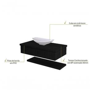 Conjunto Bancada C/cuba L45 E Prateleira Metrópole 805 Nogal Preto ônix