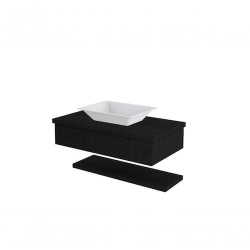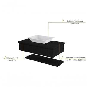 Conjunto Bancada C/cuba Messina E Prateleira Metrópole 805 Nogal Preto ônix